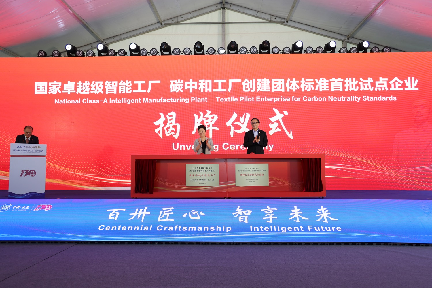 10月18日上午,大生集团碳中和智慧纺纱工厂投产仪式成功举行。 南通市委副书记、市长张彤,中国纺织工业联合会党委书记、会长孙瑞哲,中国恒天集团党委书记、董事长金永传,江苏省苏豪控股集团党委书记、董事长、江苏省纺织工业协会会长周勇,兰精集团监事会副主席Carlos Anibal,南通市人大常委会副主任、市总工会主席王少勇,南通市人民政府副市长凌屹,中国纺织工业联合会副会长阎岩,中国科学院院士朱美芳,张謇曾孙、江苏省人大常委、南通謇文化科技发展有限公司董事长张慎欣,江苏大生集团党委书记、董事长漆颖斌等出席仪式。 近年来,大生集团一直致力于推动绿色制造和智能化生产线的建设,2015年建成“十三五”国内首条全流程全国产设备数字化纺纱车间,2017年入选工信部智能制造试点示范项目;2022年建成“十四五”国内第一个智慧纺纱工厂,2023年入选工信部智能制造示范工厂揭榜单位。 此次投产的碳中和智慧纺纱工厂项目,通过数字化、智能化、物联网与绿色低碳技术深度融合,实现ERP系统与MES系统无缝衔接,形成“智能+绿色”相融共生的发展形态,打造一个集成全链控碳的“绿色工厂”和“清洁能源工厂”,配备智能物流仓储系统及研发设计中心,推进绿色制造体系建设,为纺织行业绿色发展贡献大生经验。 本次仪式全程由江苏大生集团党委副书记、总经理包卫东主持。 漆颖斌代表大生集团致辞,对各位领导与嘉宾的到来表示热烈欢迎,并向市委、市政府、行业协会、合作伙伴及全体员工在项目建设中的支持与付出表示衷心感谢。他回顾道,在130年发展历程中,大生集团始终与时代同行,近年来围绕“传承”与“发展”两篇文章,奋勇争先、敢为人先,综合实力进入全国棉纺织企业前十强,成为智改数转网联典范、宣传“张謇企业家精神”主阵地、全国纺织科研生力军。 漆颖斌指出,2024年大生集团积极响应国家“双碳”目标,投资建设国内纺织行业首个碳中和智慧纺纱工厂,围绕生产智能化、管理数字化、产品差异化与运营低碳化等实现系统提升,迎来今天的全面达产。展望未来,漆颖斌表示,大生集团将继续秉持张謇企业家精神,持续推动技术、管理和模式创新,为中国从“纺织大国”迈向“纺织强国”贡献更大力量! 金永传董事长在致辞中,回顾了恒天集团与大生集团源远流长的合作交流。他表示,双方自上世纪九十年代起携手同行,在纺织装备国产化、数字化纺纱车间、智慧纺纱工厂建设,乃至今日碳中和智慧纺纱工厂的升级征程中,相扶相持、共克时艰。他指出,在这座具有里程碑意义的碳中和工厂建设中,恒天旗下经纬纺机提供全球领先的智能化装备与低碳解决方案,双方团队并肩作战,这一精诚合作成为推动行业前行的重要力量。 金永传强调,此次投产不仅是大生130年“敢为人先”精神的时代续写,更是中国纺织业践行“双碳”战略的生动诠释。面向未来,恒天集团将继续与大生集团一道深化科技创新、产业链协同与文化传承,共同突破关键技术、开拓广阔市场,让张謇先生“父教育而母实业”的精神在新时代熠熠生辉,携手谱写中国纺织业更加绚丽的华章! 孙瑞哲会长在致辞中,代表中国纺织工业联合会对大生集团碳中和智慧纺纱工厂的投产表示热烈祝贺。他指出,从张謇先生创办大生纱厂至今跨越三个世纪,大生以实业兴国的坚守、精益求精的执着与敢为人先的魄力,树立起纺织工业的先进标杆和精神丰碑。他强调,今日投产的国内首个碳中和智慧纺纱工厂,不仅是大生集团厚积薄发的创新成果,更是其心怀“国之大者”、勇担时代使命的生动写照,为新时期行业发展新质生产力做出示范。 今年是“十四五”收官与“十五五”谋篇的关键之年,孙瑞哲对大生集团提出三点希望:一要坚持与时俱进,加快智能化、绿色化、高端化转型,为行业探索可复制的优秀经验;二要坚持长期主义,聚焦主责主业,打造更具韧性和责任的供应链;三要坚持全球视野,深度融入全球价值链,努力打造世界一流的棉纺织企业。 在全场与会嘉宾的见证下,现场举行了庄严的揭牌仪式,张彤市长、周勇会长为“国家卓越级智能工厂”和“纺织行业碳中和工厂创建和评价技术规范团体标准首批试点企业”揭牌。 仪式启动环节,张彤,孙瑞哲,金永传,周勇,王少勇,凌屹,阎岩,朱美芳,张慎欣,漆颖斌共同按下启动按钮,宣告大生集团碳中和智慧纺纱工厂启航新篇章! 仪式结束后,各位领导和嘉宾参观了碳中和智慧纺纱工厂,对其中的智能化生产线和先进的管理云平台系统给予高度赞赏与肯定;在大生纱厂工业遗存,现场与文物建筑对话,感受时间年轮下大生深厚的历史文化底蕴。