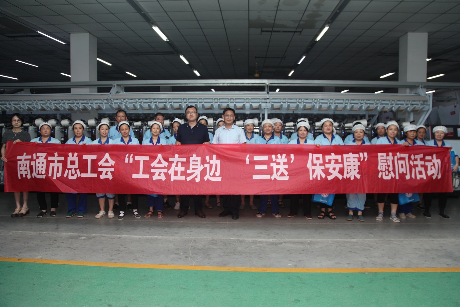 进入盛夏,高温天气频频打卡。持续的高温,给坚守生产一线岗位的员工带来严峻“烤”验,他们的工作和生活情况时刻牵动着工会“娘家人”的心。8月2日下午,南通市总工会党组成员、副主席吕建峰一行冒着酷暑来大生集团新型纺车间,开展“工会在身边 ‘三送’保安康”夏季慰问活动,为奋战在高温一线的员工送上“娘家人”的清凉问候。集团公司副总经理秦建军陪同慰问。 秦建军向吕建峰一行简要介绍集团公司生产经营情况、防暑降温措施落实及集团工会向车间一线员工送清凉活动情况。在新型纺车间生产现场,吕建峰一行对现场员工进行慰问。吕建峰与员工亲切握手,将一份份防暑降温慰问品送到员工手上。他感谢员工不辞辛劳、不畏高温,为保障企业生产、推动南通经济发展辛勤付出。他叮嘱大家在炎炎夏日,要注意劳逸结合、保重好身体。他要求公司把员工身体健康放在首位,落实好防暑降温措施,确保高温一线员工舒心工作、平安度夏。 |